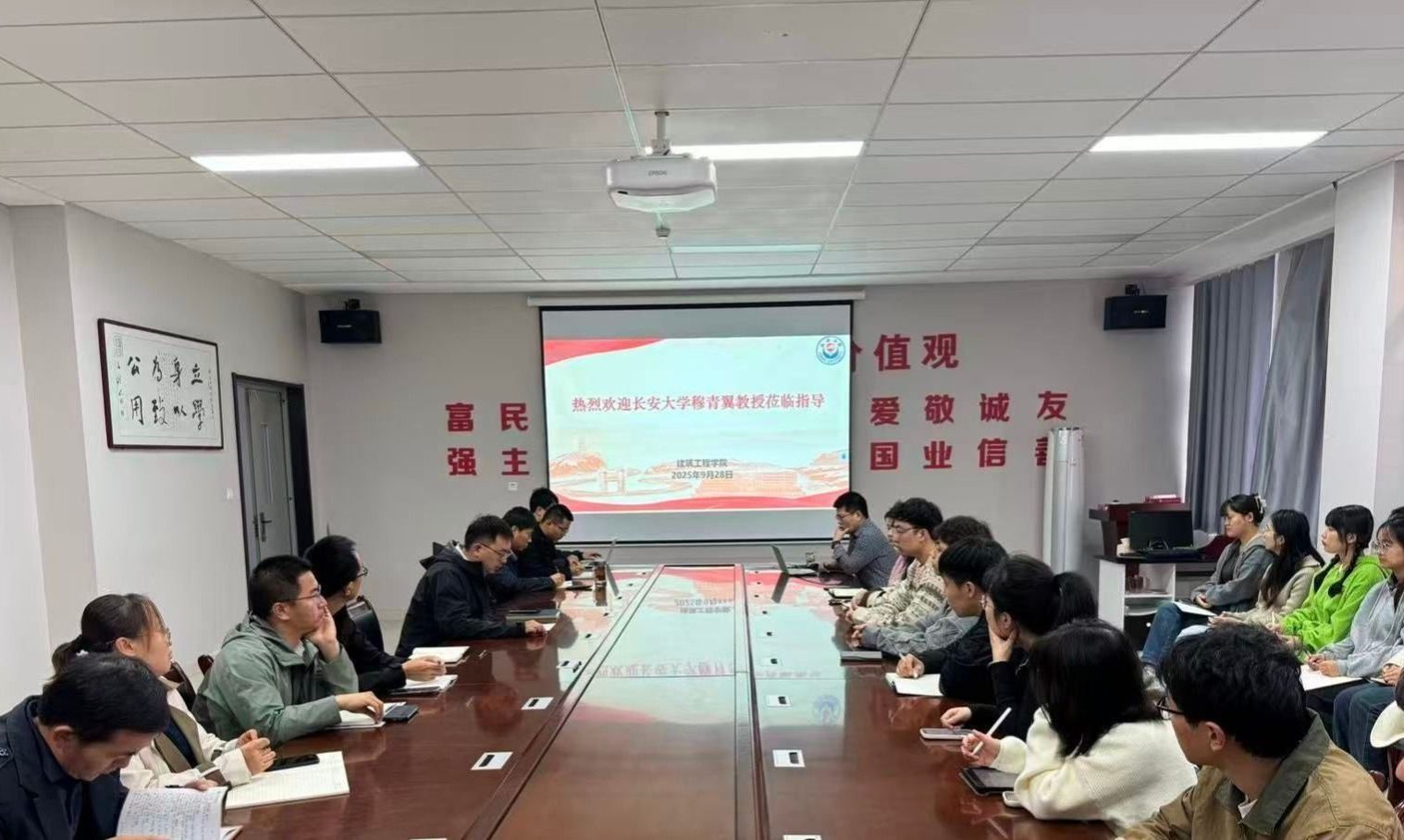 本网讯 9月28日,建筑工程学院邀请青年基金B类获得者,长安大学博士生导师穆青翼教授为我院师生作报告并召开国家自然科学基金选题专项论证会。副院长霍治澎主持会议,全体专任教师及部分研究生参会。