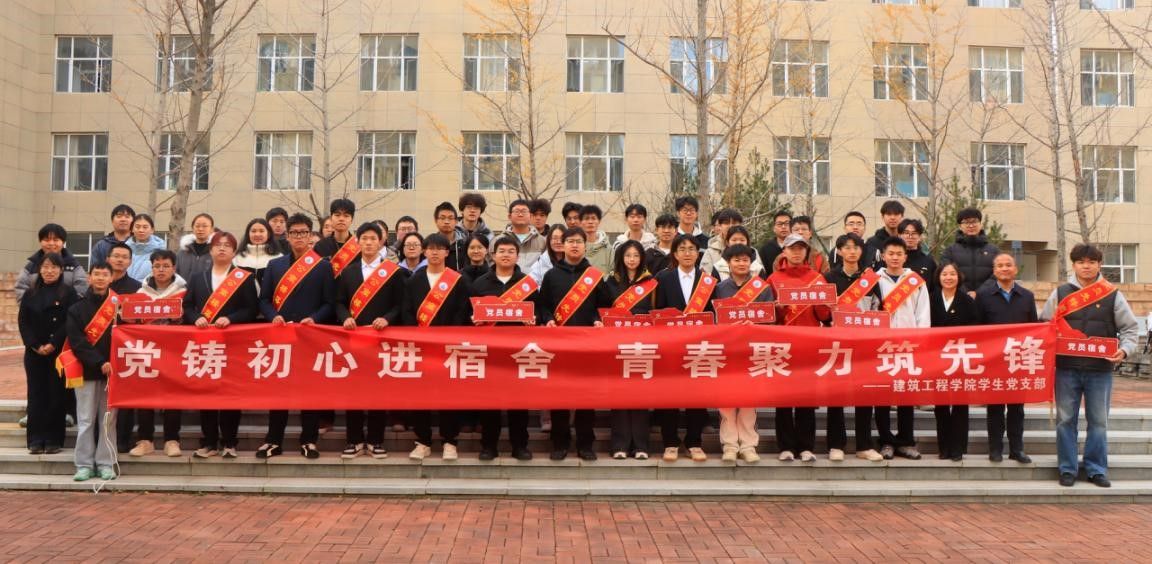 本网讯 11月11日下午,我院学生党支部在17号学生公寓楼前广场举行“党铸初心进宿舍,青春聚力筑先锋”主题党日活动,学院党委书记赵耀锋、副书记李宁,教工党支部副书记王磊,学生党员、第67期入党积极分子及宿舍舍长参加。活动由学生党支部书记郭芯萌主持。