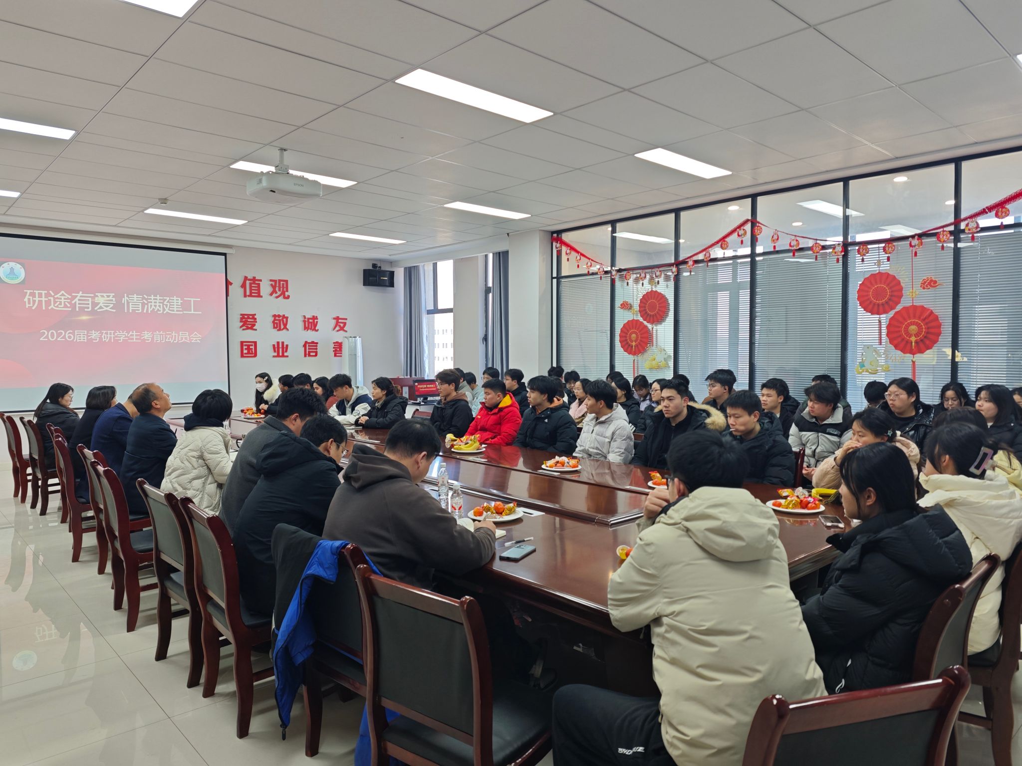 本网讯 为坚定考研学生信念,缓解备考压力,助力学生以最佳状态迎接即将到来的研究生入学考试。12月8日下午建筑工程学院在三楼会议室举行了2026届毕业生考研冲刺动员大会。学院领导班子成员、辅导员、毕业班班主任、2025级研究生代表及全体备战研究生入学考试的大四学生参加了本次大会。