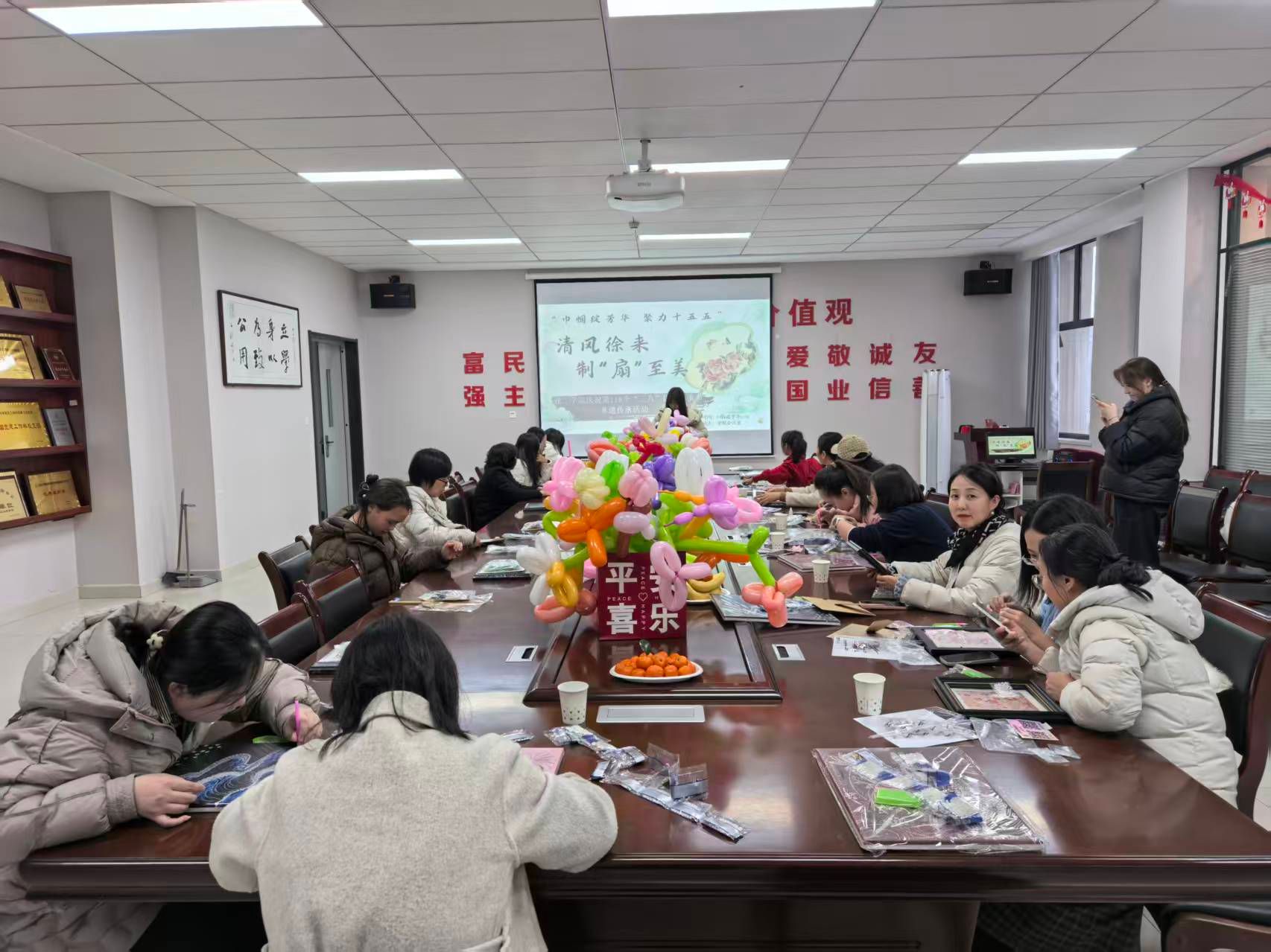 本网讯 在第116 个 “三八” 国际妇女节来临之际,3月6日下午,我院在学院会议室开展了 “巾帼绽芳华 聚力十五五” 为主题,举办 “清风徐来 制‘扇’至美” 非遗传承体验活动,向全院女教职工致以节日问候与美好祝福。全体女教工参加了本次活动。